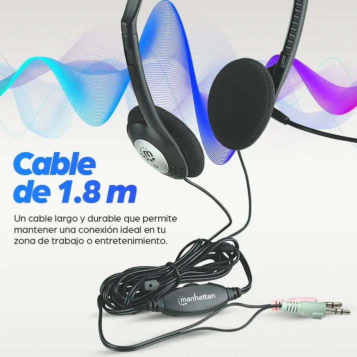 Los Audífonos Estéreo de MANHATTAN combinan un desempeño de calidad y un diseño cómodo, lo que le da gran valor. Los audífonos están acolchados con un material suave y la diadema se puede ajustar a distintos tamaños para mayor comodidad. De diseño ligero con micrófono flexible le proporciona la calidad, el funcionamiento y la comunicación con manos libres que usted requiere. Un control de volumen le proporciona una facilidad al momento de su ajuste. Un cable largo y durable le ayuda a mantener una conexión segura casi en donde sea.