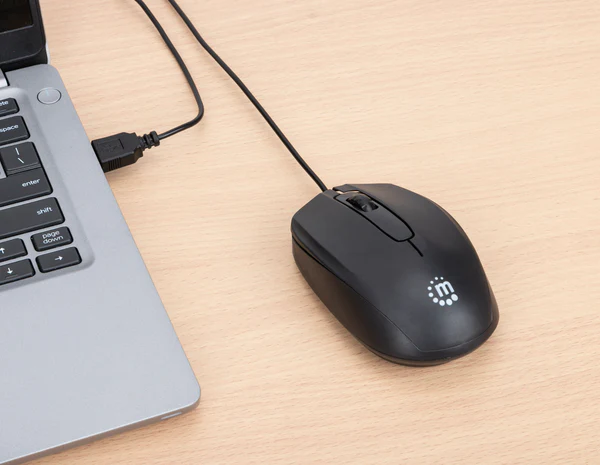 Mouse con cable Manhattan: conexión USB rápida, portátil y confiable para laptops y computadoras de casa u oficina