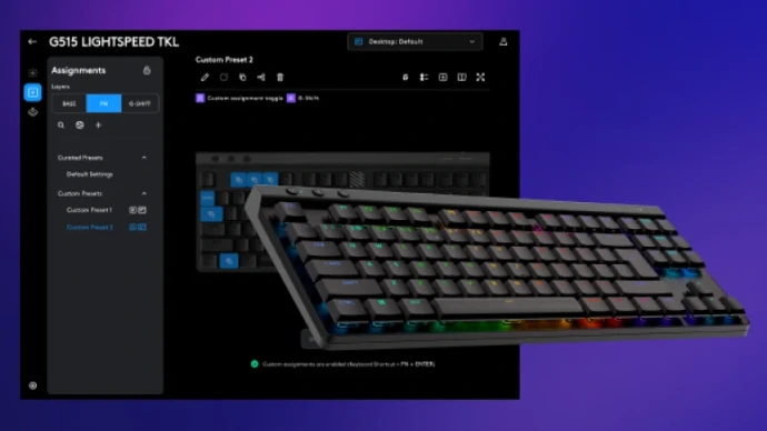 Utiliza G HUB para crear un centro de control personalizado y programa hasta 15 funciones por tecla con KEYCONTROL. Mapea cualquier tecla para adaptarla a tu estilo de juego.