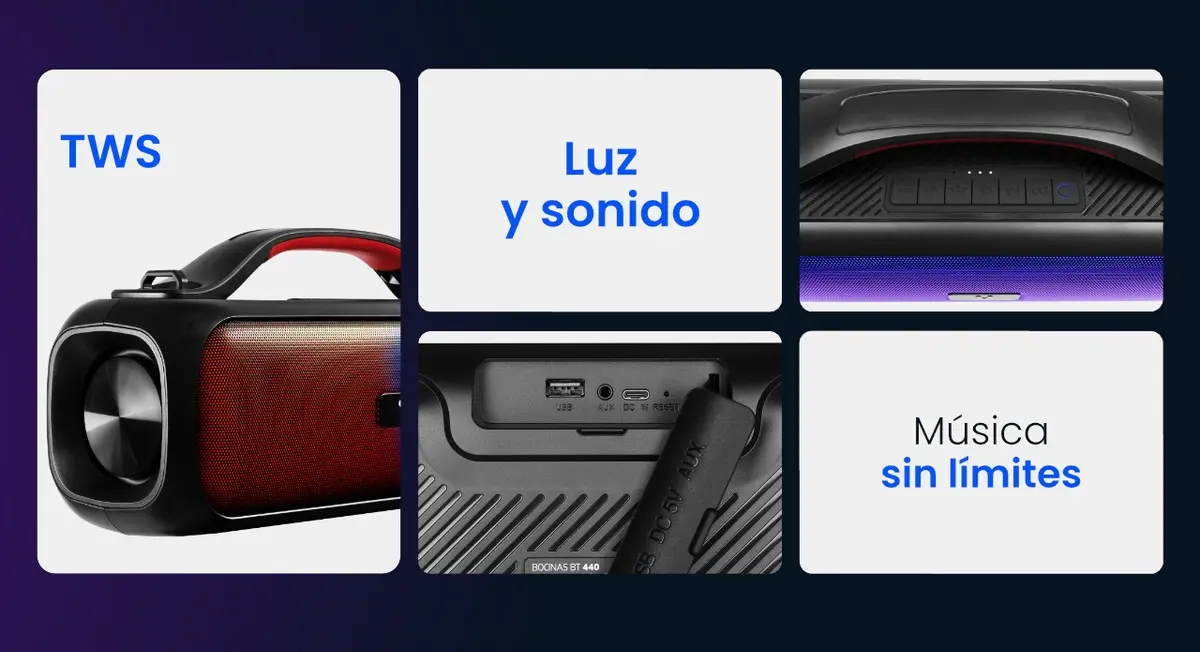 Los momentos cotidianos se pueden convertir en horas de diversión, con la bocina BSP-440 de Vorago, que gracias a su tamaño compacto, puedes llevarla a donde sea o con su práctica asa. Una tarde en la playa o un fin de semana en el campo se disfrutarán al máximo con tu música preferida.