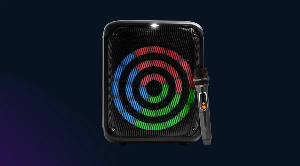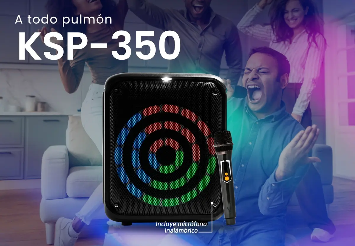 La bocina karaoke de 8 pulgadas, KSP-350 de Vorago, no solo ofrece un sonido potente y nítido, sino que también multiplica la diversión con su iluminación RGB dinámica y efectos de flash disco para transformar cualquier espacio en una pista de baile.