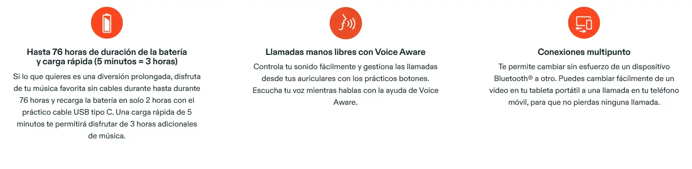 Los auriculares JBL Tune 720BT transmiten el potente sonido JBL Pure Bass gracias a la última tecnología 5.3 BT. Estos auriculares, muy fáciles de usar, ofrecen hasta 76 horas de puro placer auditivo y 3 horas adicionales de batería con solo 5 minutos de carga. Descarga la aplicación gratuita JBL Headphones y personaliza tu sonido a través del ecualizador, las indicaciones de voz te ayudarán a conocer las prestaciones de los auriculares. Gestiona las llamadas, el sonido y el volumen desde el auricular, todo ello con cómodos botones. Si recibes una llamada mientras estás viendo un vídeo en otro dispositivo, los auriculares JBL Tune 720BT se conectan fácilmente a tu móvil para que nunca pierdas una llamada. Los auriculares JBL Tune 720BT son ligeros y cómodos incluso después de horas de escucha, y puedes plegarlos para llevártelos en tu mochila a todas partes.