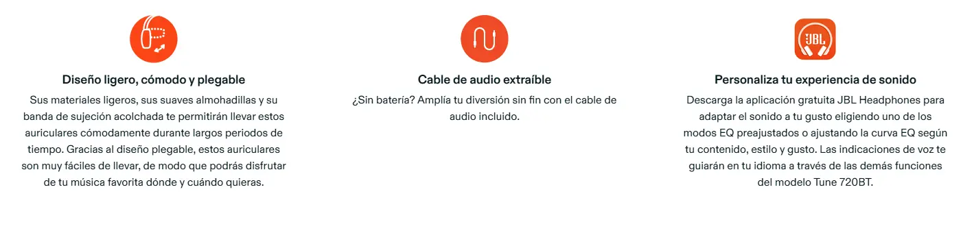 El modelo JBL Tune 720BT cuenta con el famoso sonido JBL Pure Bass, el mismo que usan las salas de conciertos más famosas del mundo.