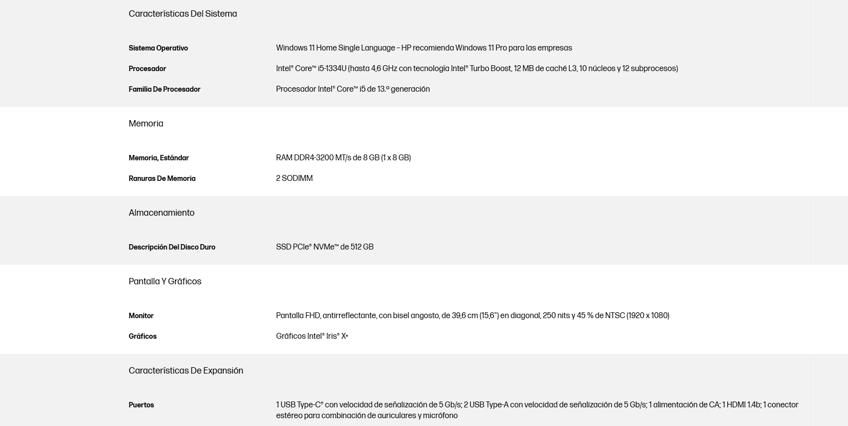| Almacenamiento Laptop | Unidad de Estado Sólido SSD |