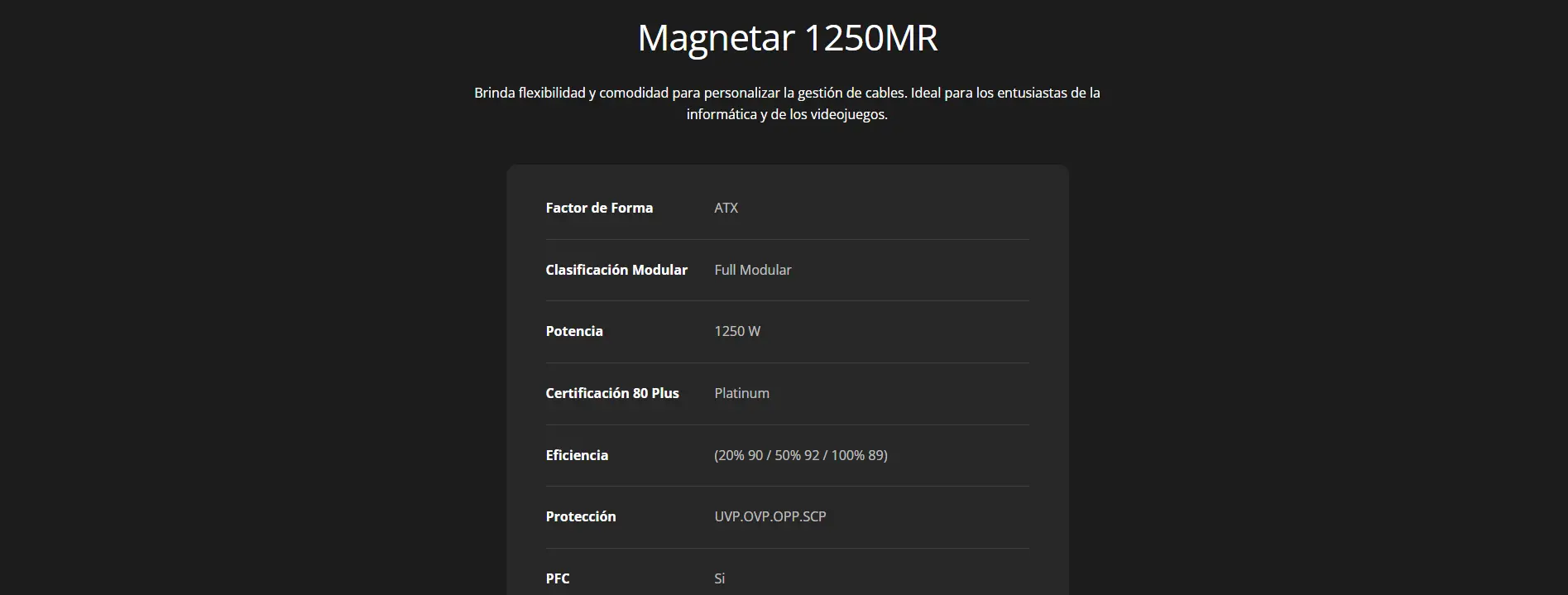 Empoderando cada componente con confiabilidad y eficiencia: ¡Conecta la fuente de poder Magnetar 1250MR y lleva tu sistema al siguiente nivel de rendimiento!