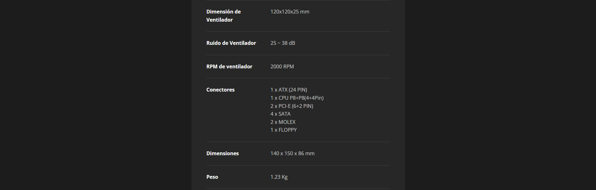 | Certificación Fuente de Poder | 80 Plus Bronze |