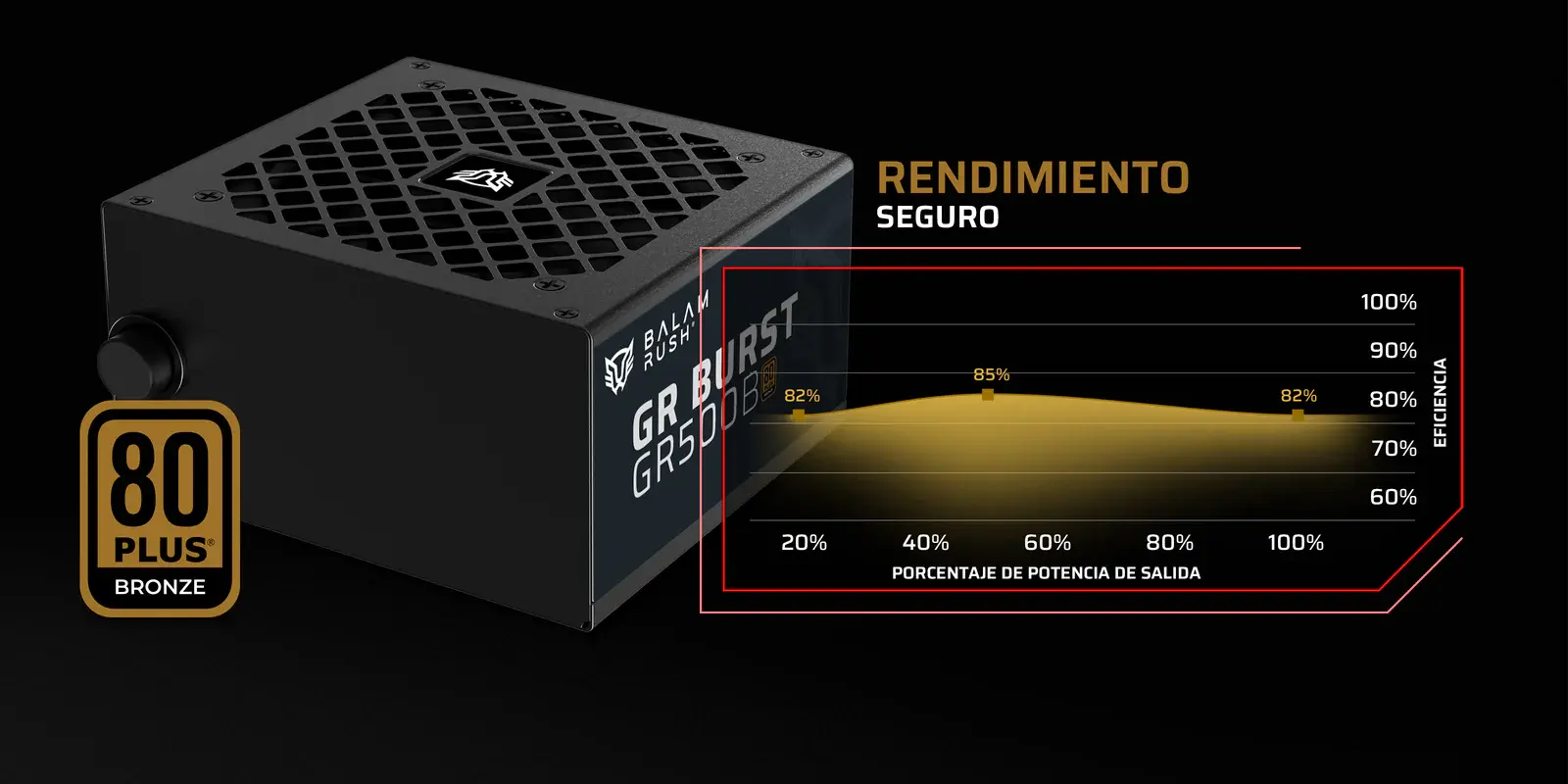 Fuente de Poder Balam Rush GR Burst GR500B 80 PLUS Bronze, 24-pin ATX, 120mm, 500W, CSP-555 SKU: BR-937702