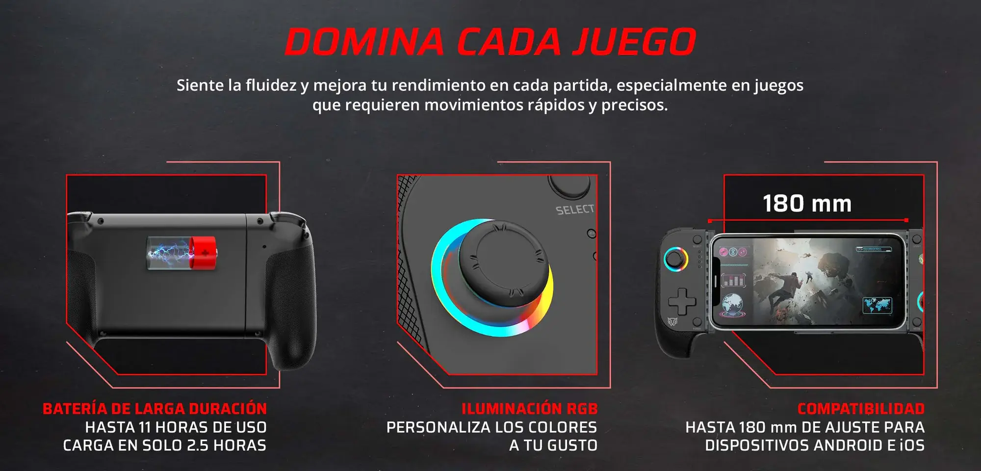 La batería de larga duración permite sesiones de juego prolongadas sin interrupciones, eliminando la necesidad de cargar constantemente el dispositivo. Con una sola carga, el gamepad brinda horas de entretenimiento continuo, ideal para jugadores que buscan inmersión sin interrupciones.