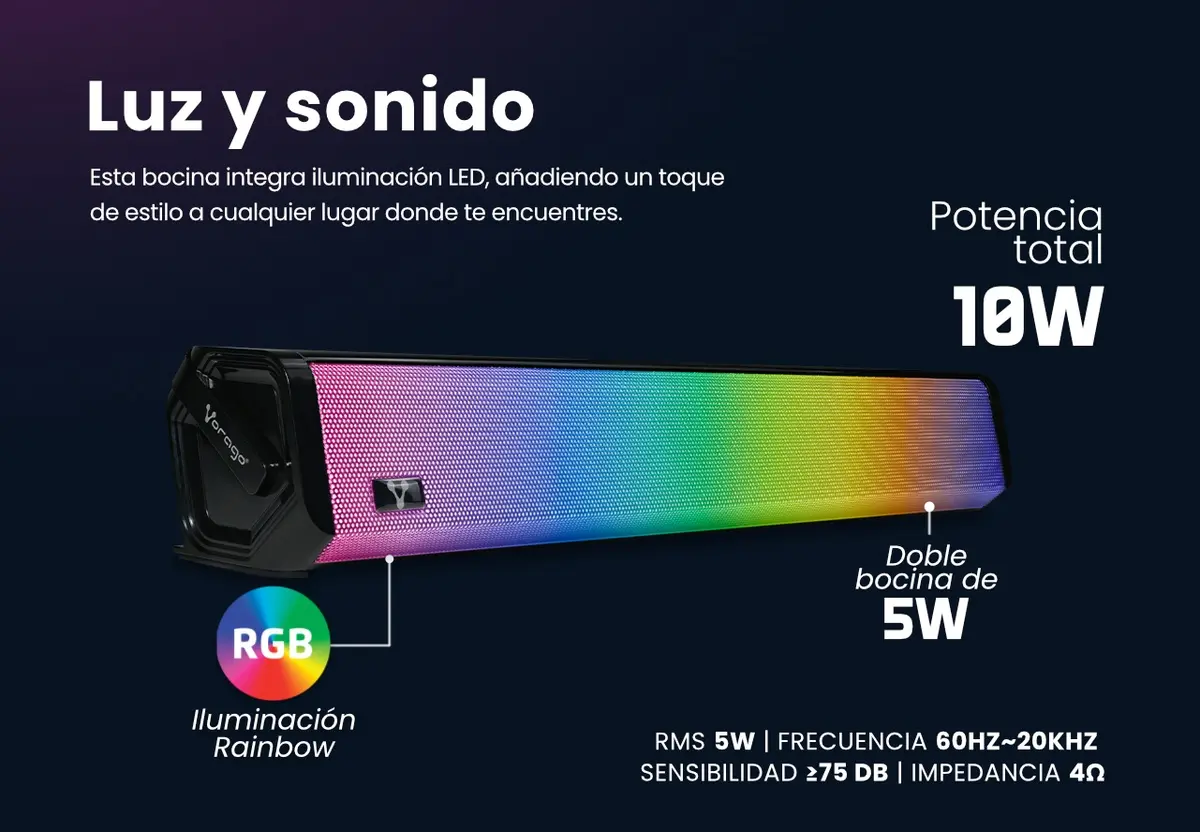 Vorago Bsp-320 Barra De Sonido Bluetooh Inalambrica Iluminacion Rainbow 3.5 Mm Usb Control De Volumen
