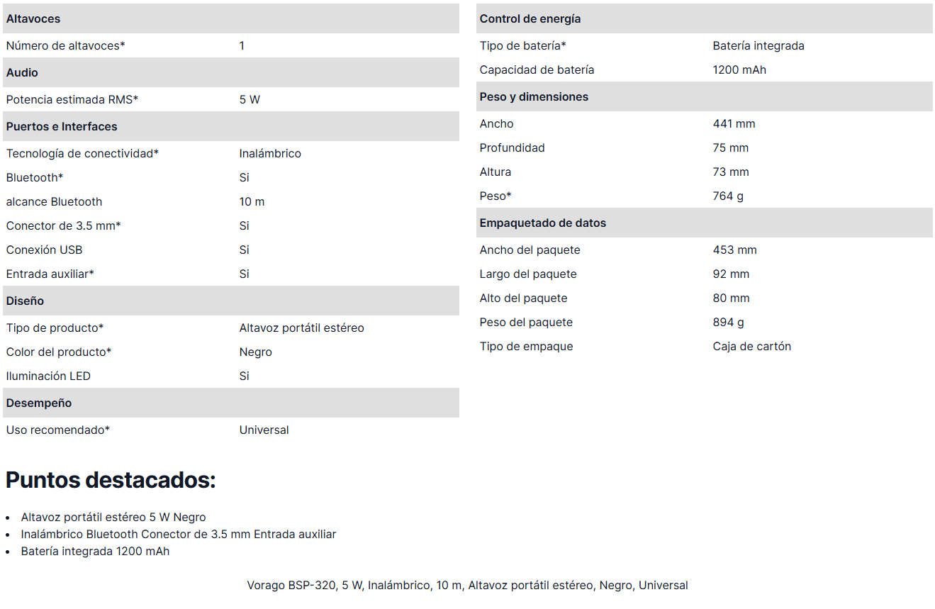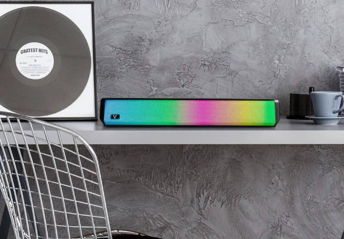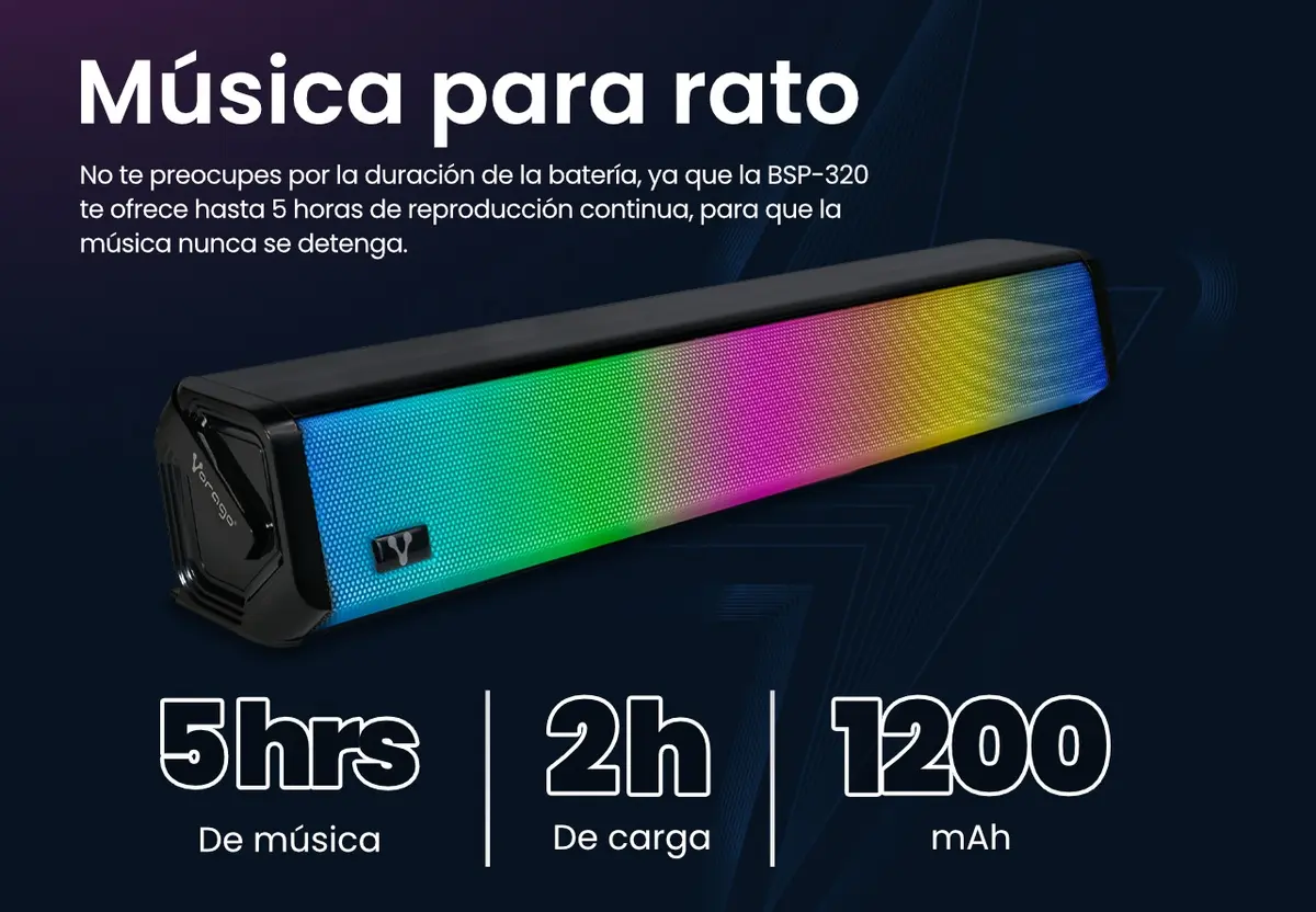 Dale un toque de color y sonido increíble a tu escritorio o a cualquier ambiente con la mini barra de sonido Bluetooth BSP-320 de Vorago, que con su compacto tamaño pero potente sonido, es perfecta para darle vida a cualquier espacio.