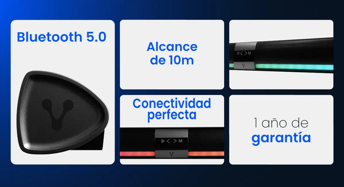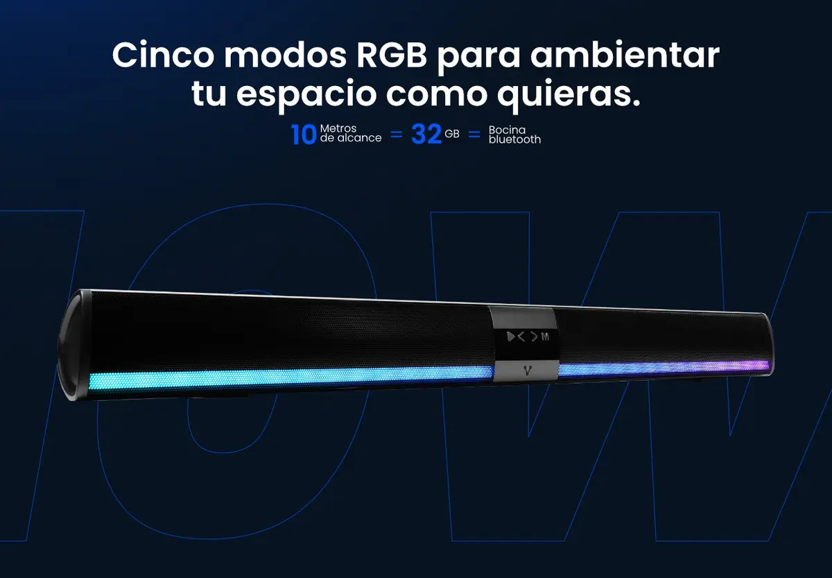 Vorago Bsp-450 Barra De Sonido Bocina Inalambrica RGB Bluetooth Distancia 10 Metros Puerto USB Aux 3.5 mm Setup Gamer para TV Recargable Portatil Color Negro