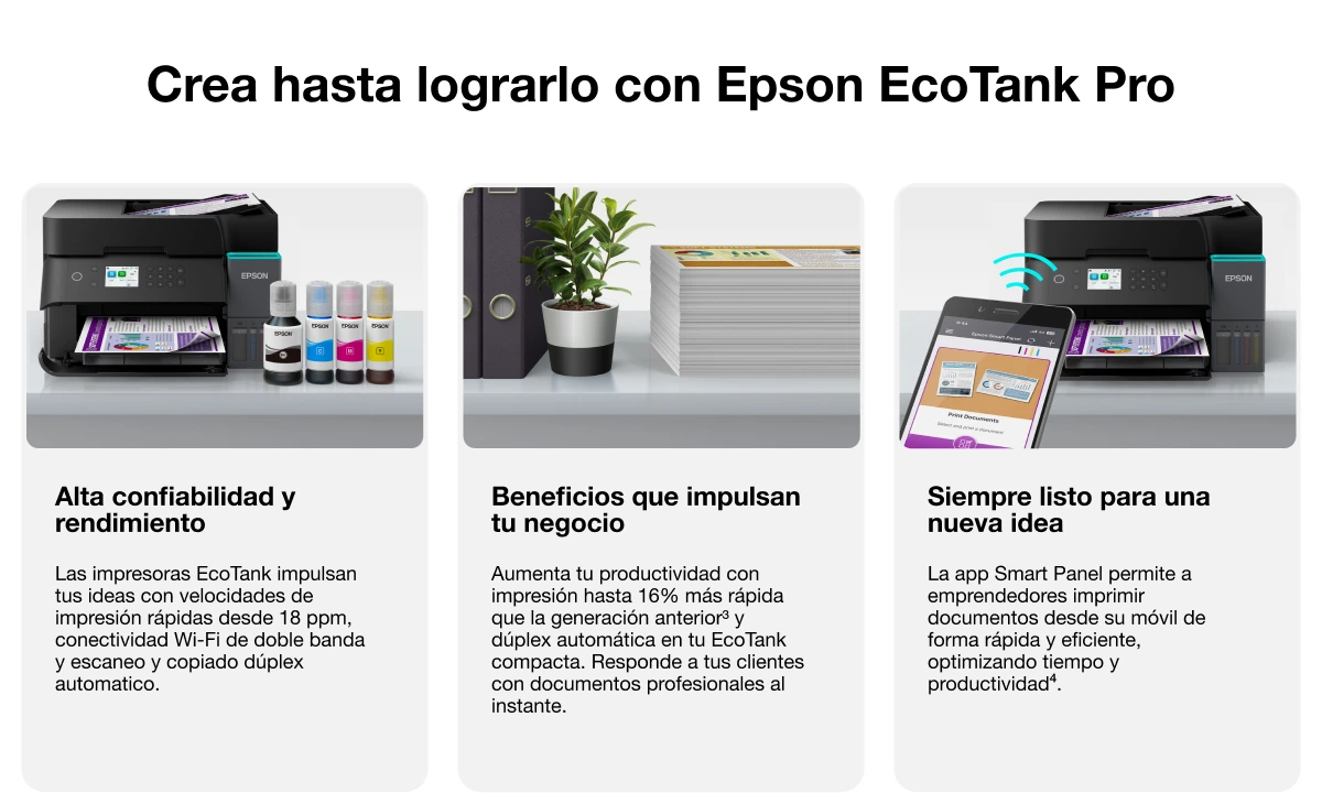 - Calidad Epson para que tu imagen profesional sea impecable en cada impresión.