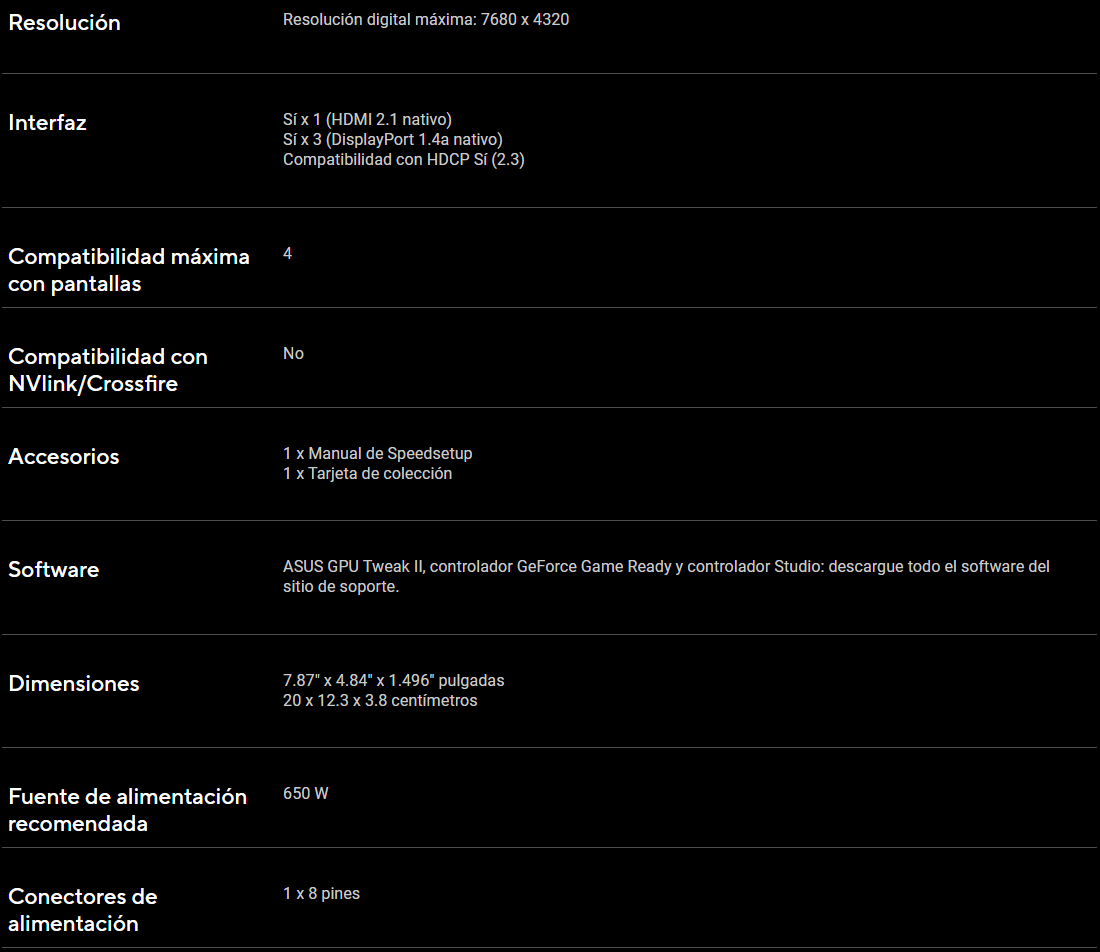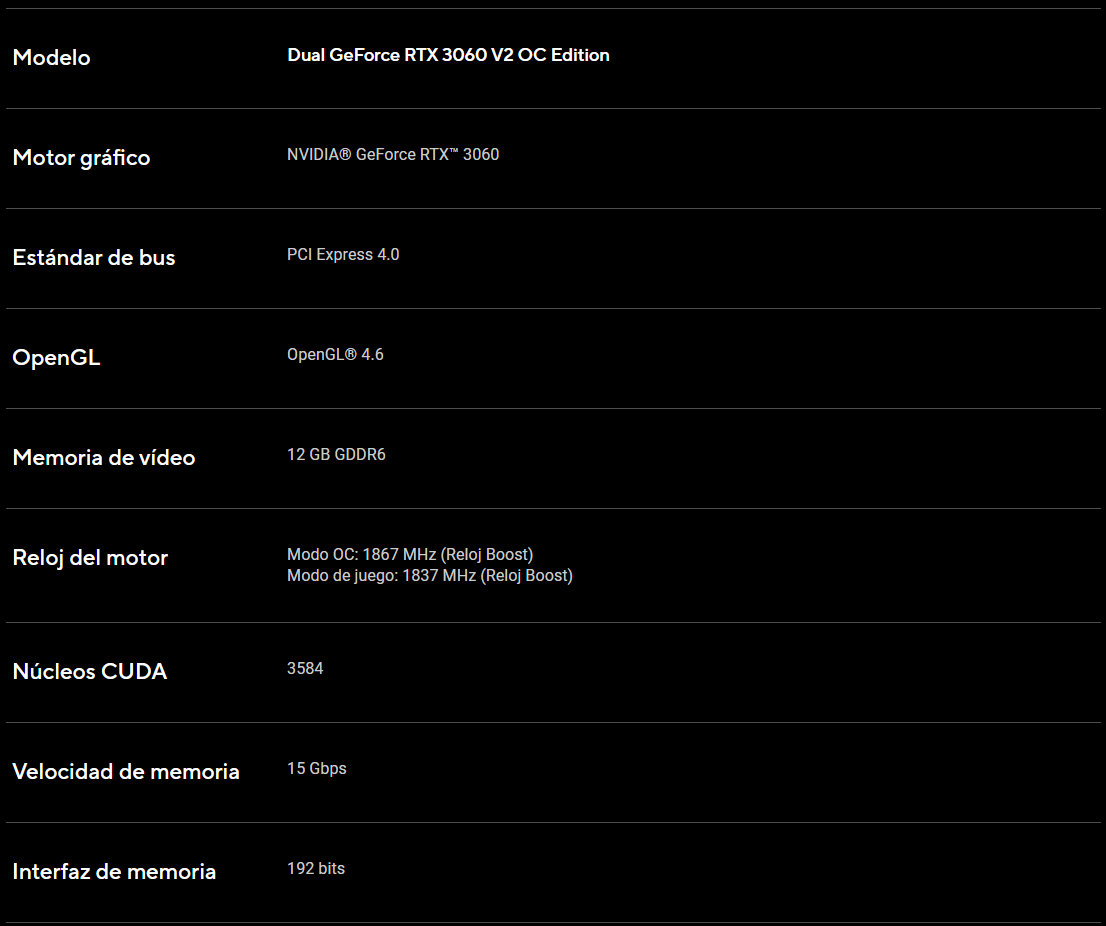 - Modo OC: Boost clock 1867 MHz (modo OC) / 1837 MHz (modo Gaming).