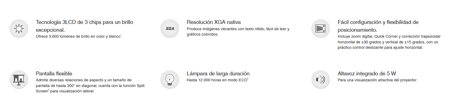 - Tecnología 3LCD: de 3 chips para el mejor brillo de color en tu clase.