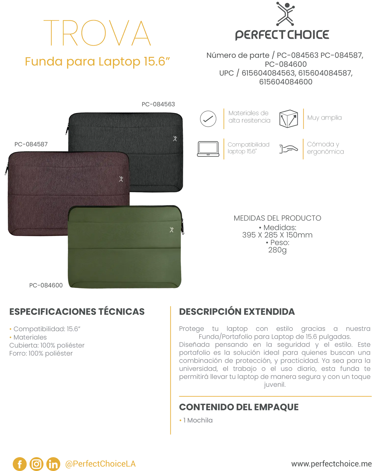 • Compatibilidad con laptop de 15.6” (Pulgadas).