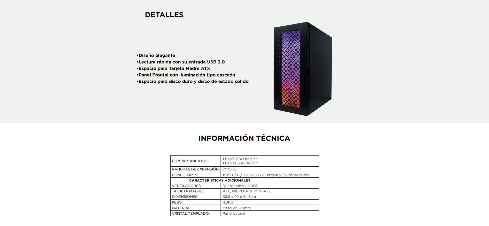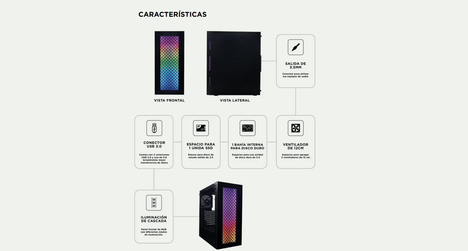 Tarjetas madres soportadas:ATX, Micro ATX, Mini-ATX