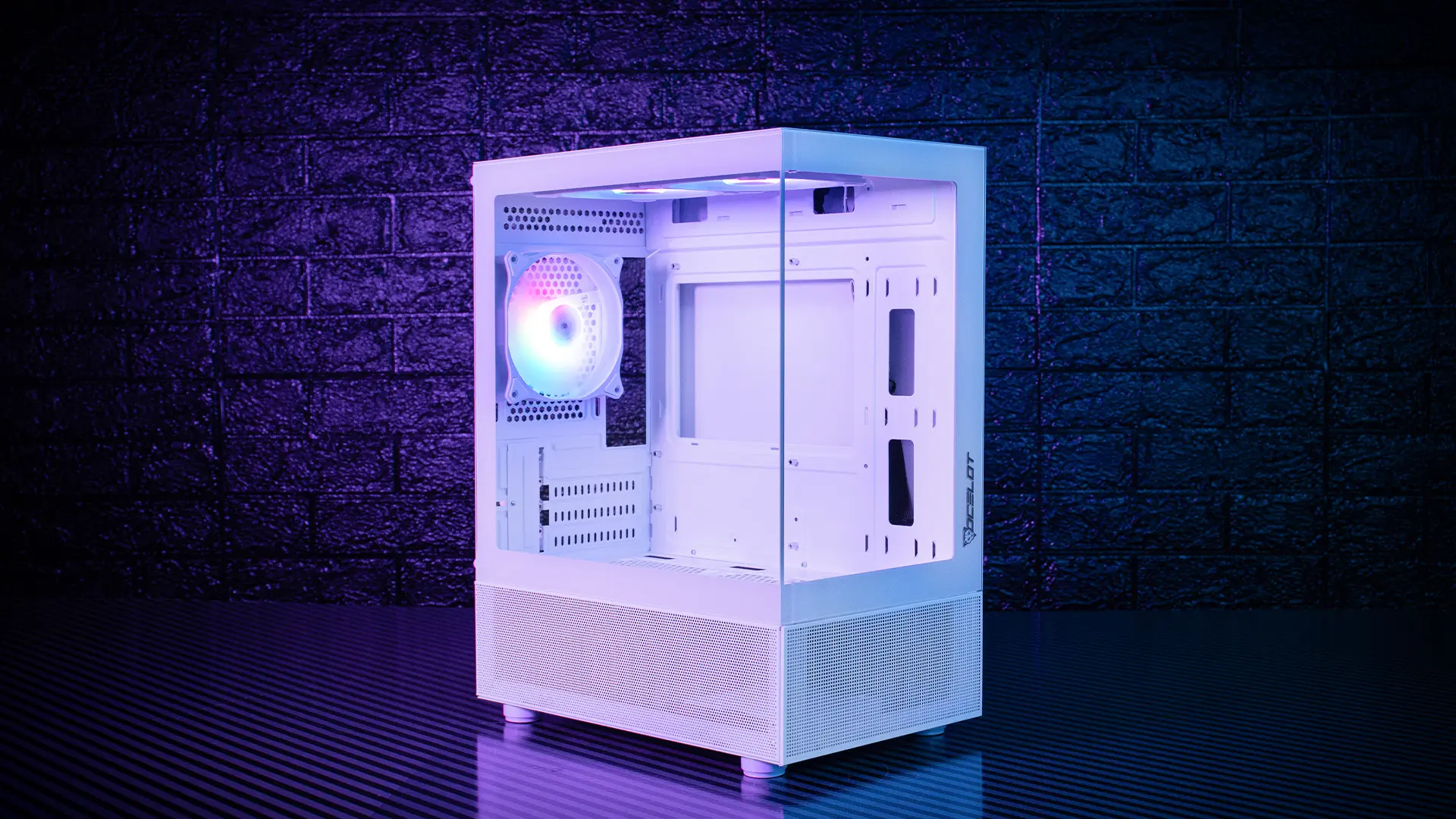 El Gabinete Ocelot Gaming Micro ATX GLASS EW7 combina un diseño elegante en color blanco con un sistema de refrigeración avanzado gracias a sus tres ventiladores. Ideal para gamers que buscan alto rendimiento y estética en su setup.