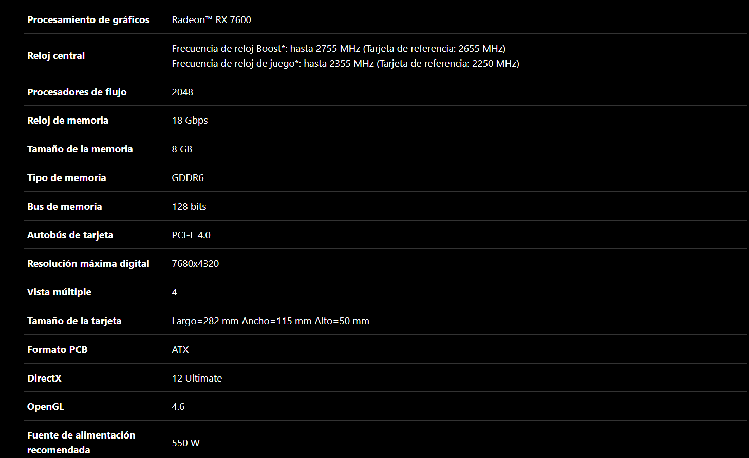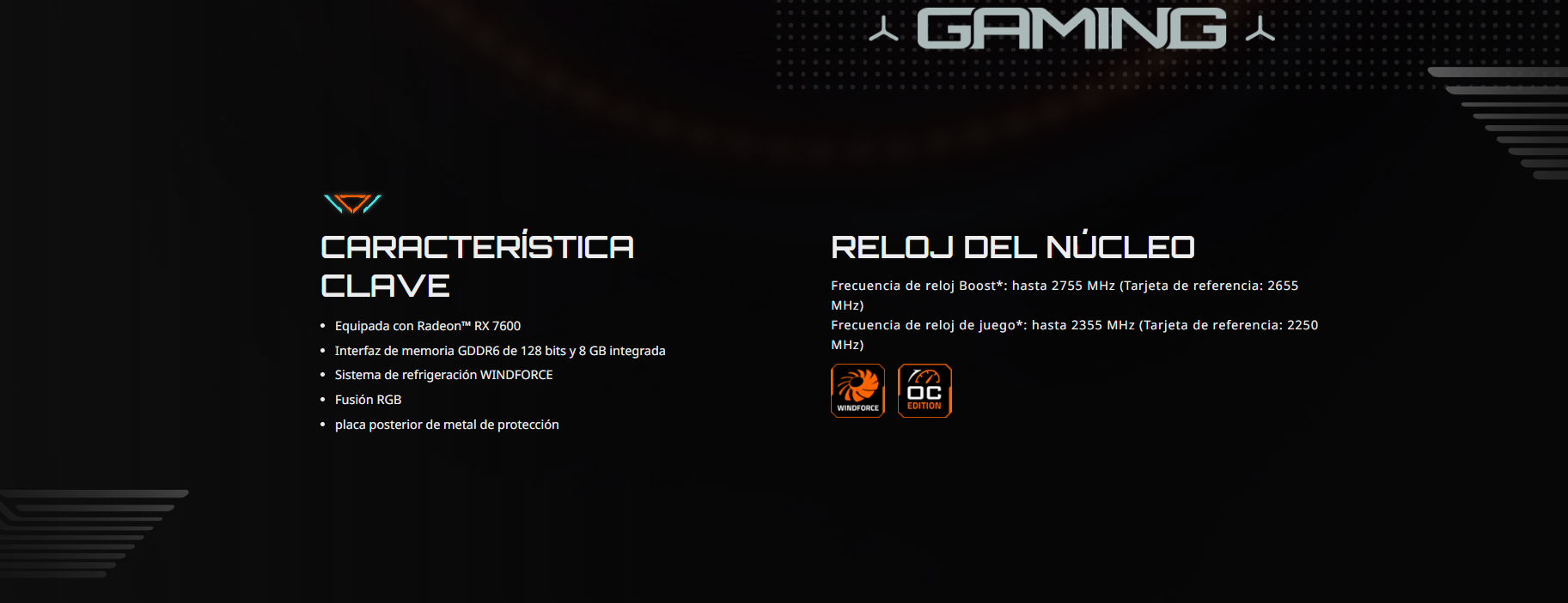 Radeon™ RX 7600 GAMING OC 8G (rev. 1.0 / 1.1)
