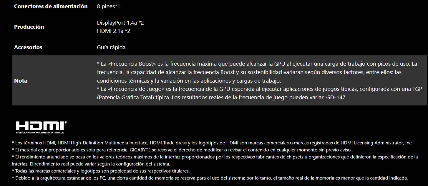 | Interfaz Tarjeta de Video | Displayport o Hdmi |