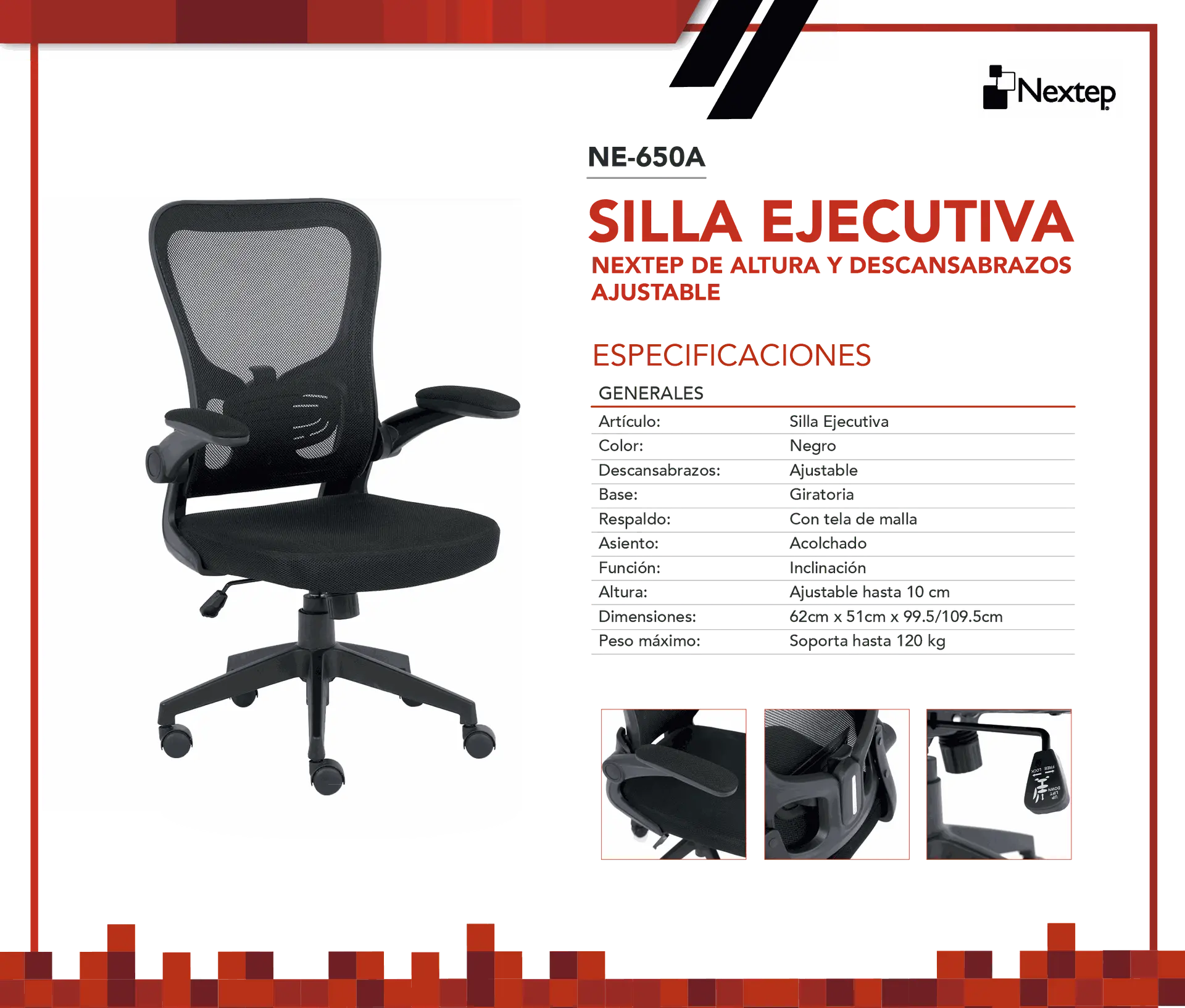 Nextep Silla Plegable NE-650A, Respaldo de malla, Reposabrazos Ajustables, Negro SKU: NE-650A