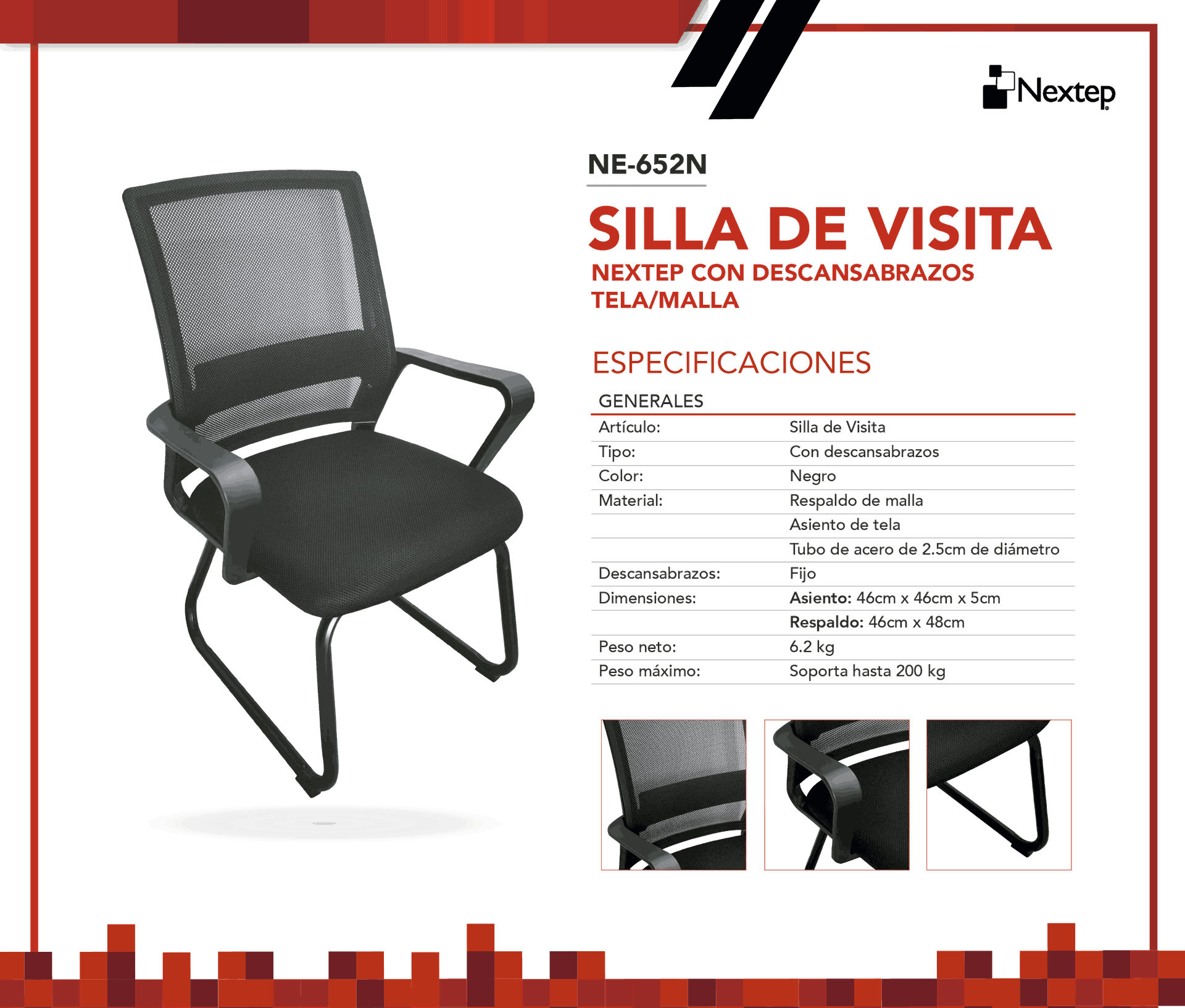 Nextep Silla NE-652N, Respaldo de Malla, Tapiz en Tela, Negro SKU: NE-652N