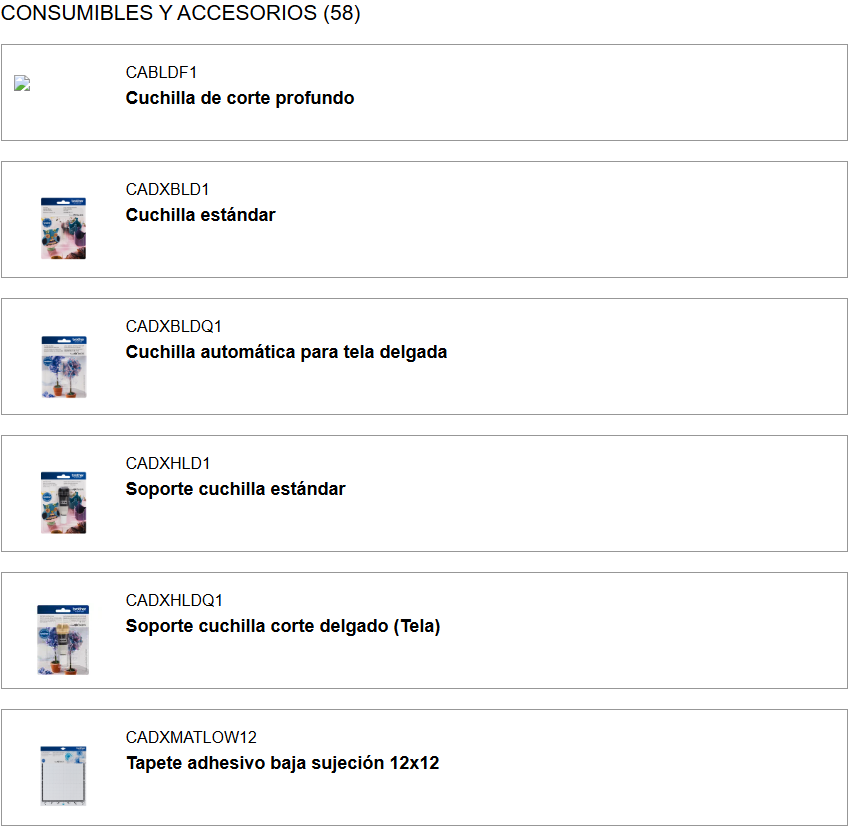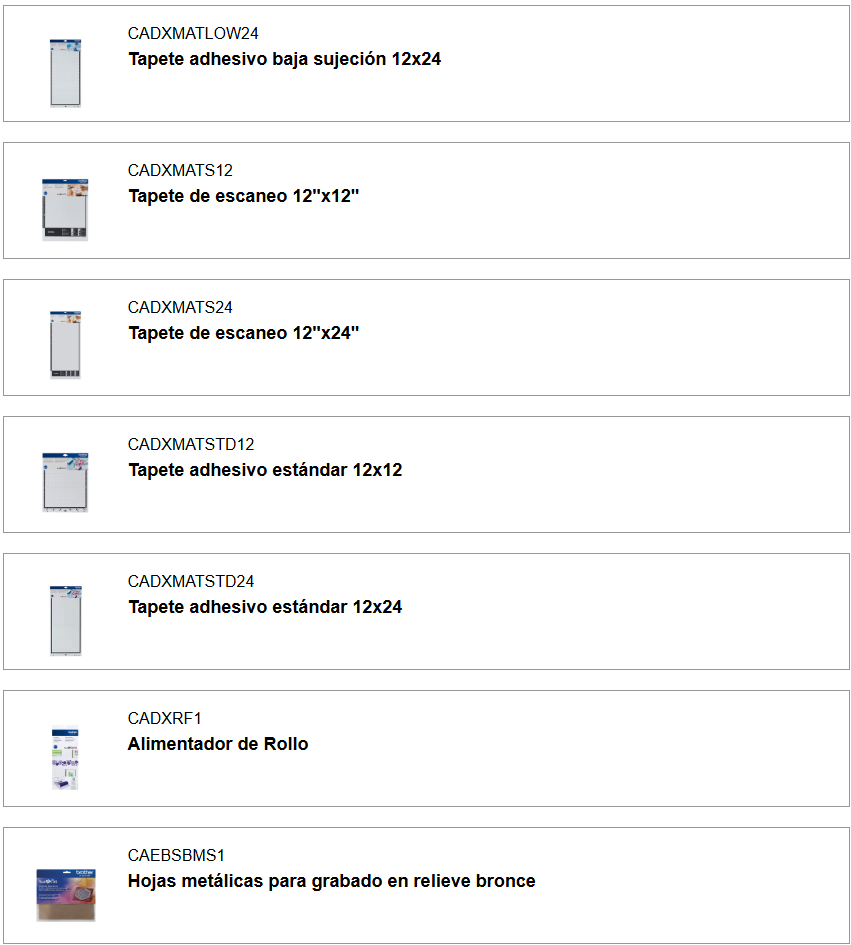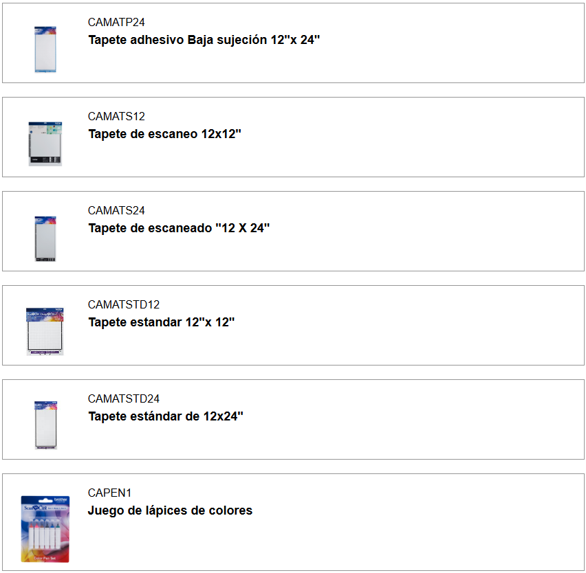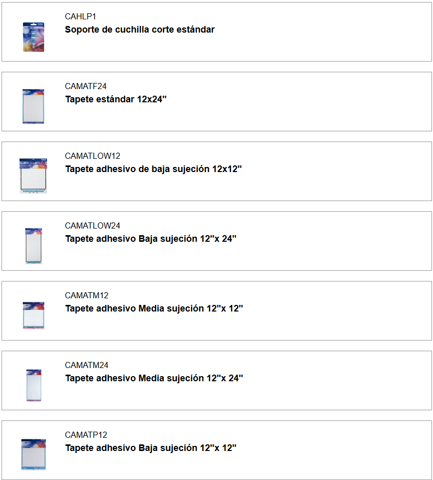 | Compatibilidad de materiales‡ | La compatibilidad del material puede variar. Siempre realice un corte de prueba / prueba para confirmar un corte exitoso. |